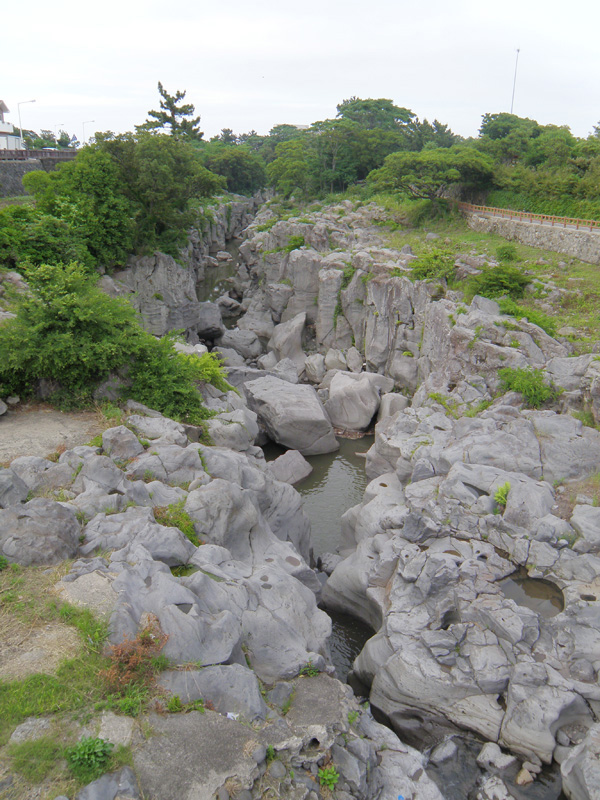 しばらく歩いていると、川を発見。 しかしその川がすごかった。 河口までわずか200mほどの位置。 なのに、川はとても険しかった。 こんな険しい川、ふつう山の中しかないよ。