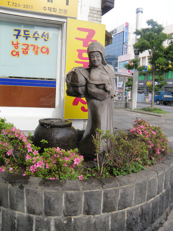 観徳亭観光を終えて、東の方に歩いてみることに。 そしたらこぢんまりとした商店街を発見。 入口には水瓶に水を入れる女性の像があった。
