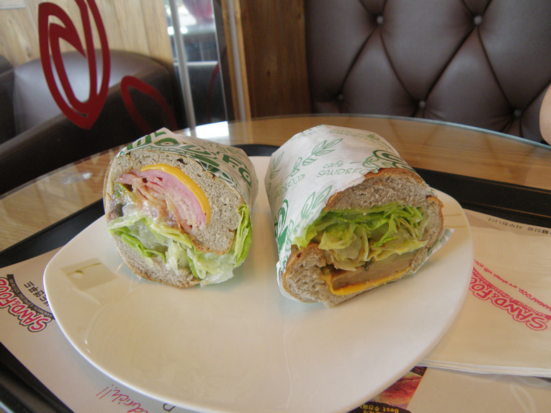 通りまで出てきたら、サンドウィッチ屋さんがあったので、そこに入ることに。 ここなら間違いなく食べ物があるだろう。 メニューに英語が書かれているといいが…