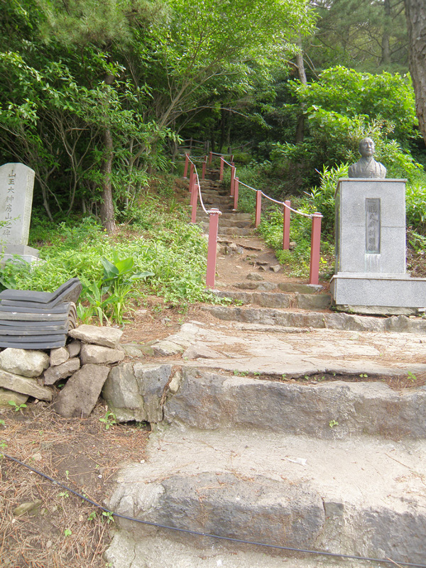 そんなことを話しているうちに、「松岳山」に到着。 見てないのだけど「チャングムの誓い」というドラマで撮影されたシーンがある場所。 で、海に突き出た半島なのだが、海岸沿いには旧日本軍が武器庫として作った洞窟が15個も残っているらしい。