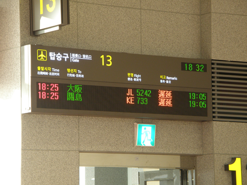 そんな中待っていると、電光掲示板に「遅延」の文字が。 ただでさえ時間が余っていたのに、飛行機の遅延でさらに40分待つことに…