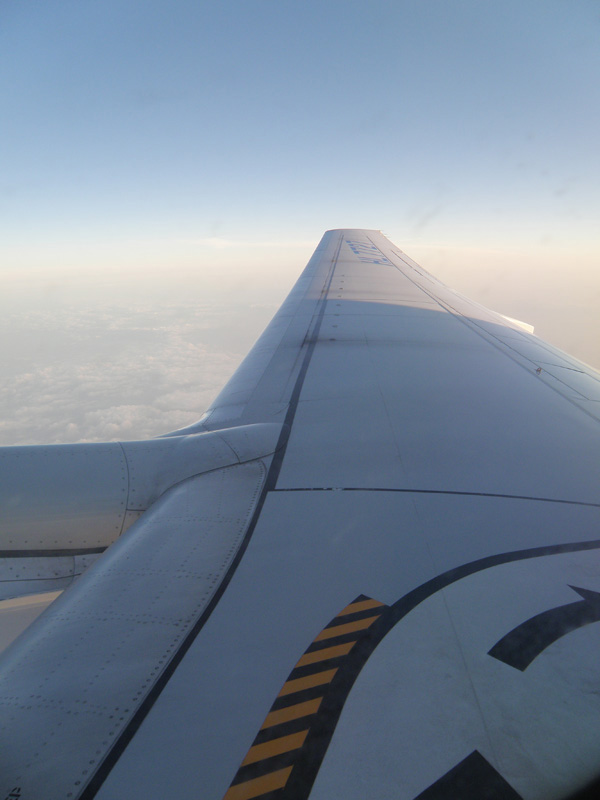 なんとか時間をつぶし、出発の時間になった。 帰りは窓際の席。 しかし羽のすぐ上なので、景色はあまり見えなかった。