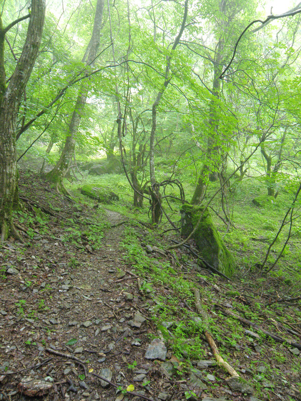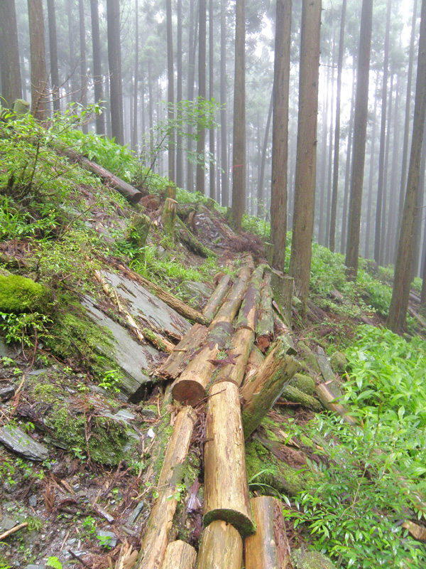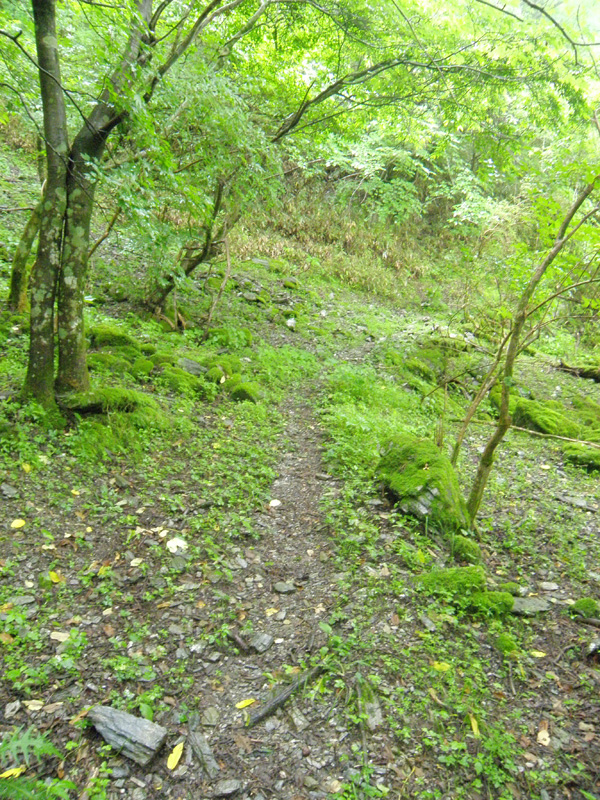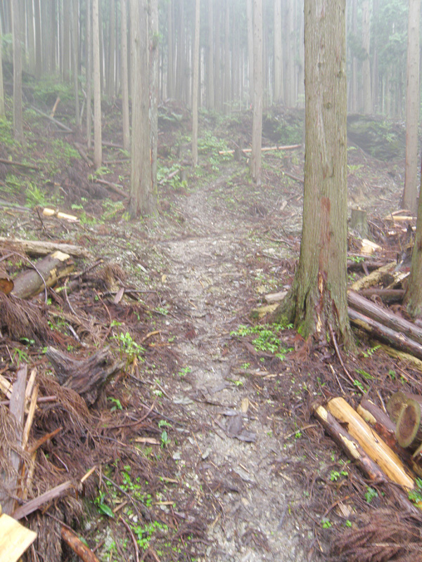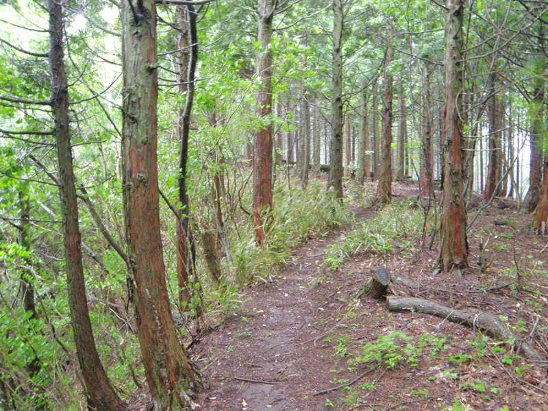 道なのか、道でないのかわからないようなところを下っていく。 ジグザグに下っていくし、木を切った跡もあるので、道なのだろう。