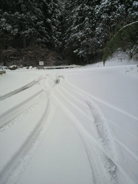 目的地は、正月にも遊びに行った大川山。 一応チェーンを積んで出発。 国道438号線もほとんど雪がなかった。 が、そこから大川山キャンプ場に向かう道に入って、1kmも進まないうちに、ものすごい雪景色に変わった。