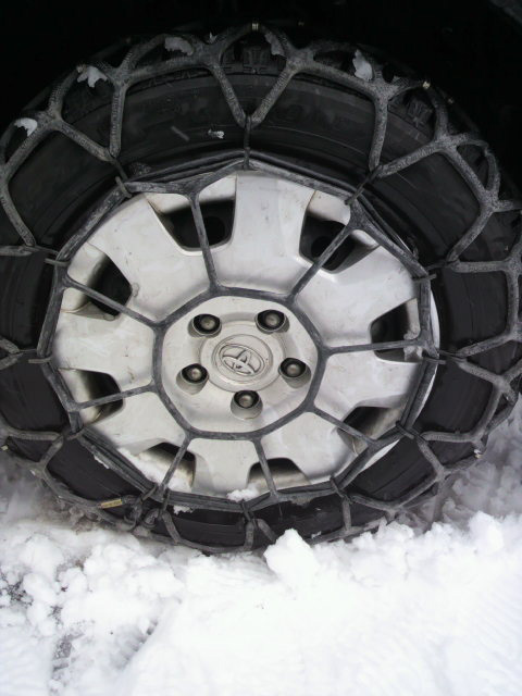 駆動輪がスリップし始めてきたので、少しUターンして、広い場所でチェーンを装着。 やっぱり四駆が欲しい…