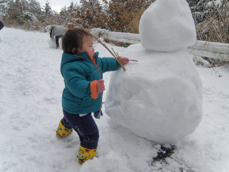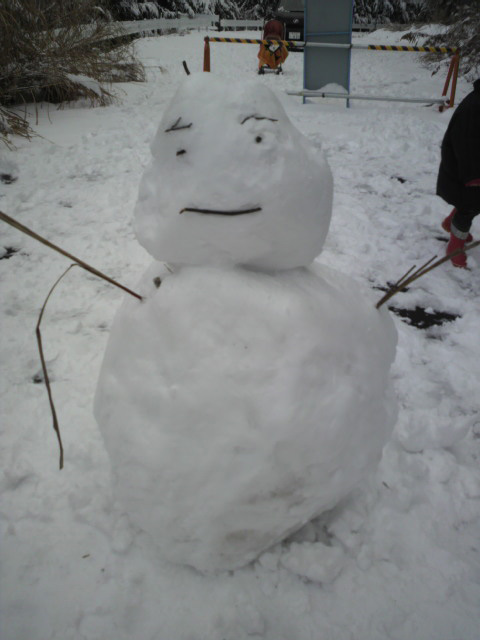 オレも子供たちと一緒に遊んで、不細工な雪だるまが完成。