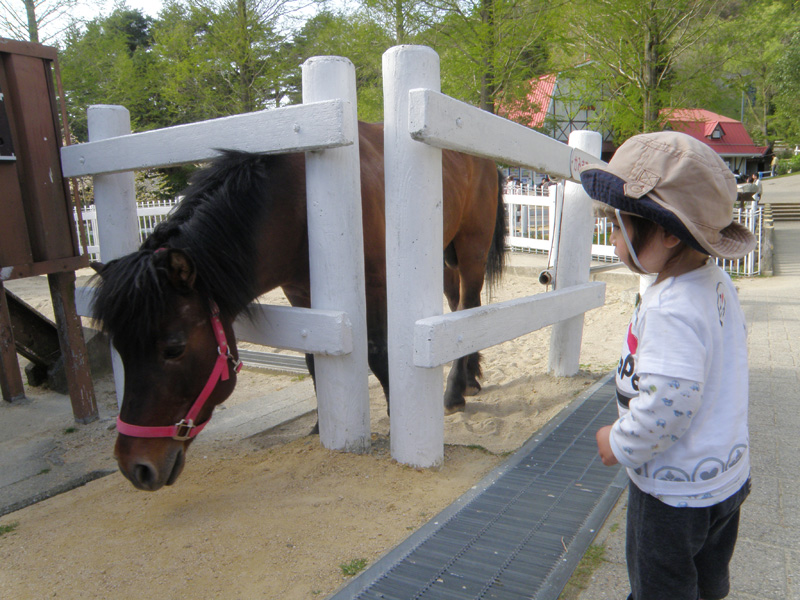 そして馬。 ポニーではなく、普通の馬に乗って、短いコースだけど一周する場所があったので、長女をそれに乗らせてあげた。 最初、ビビってたけど、「馬揺れすぎ」とか言って楽しんでいた。