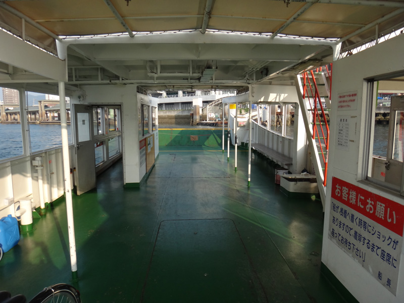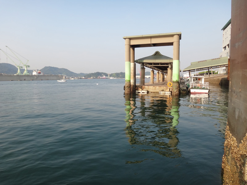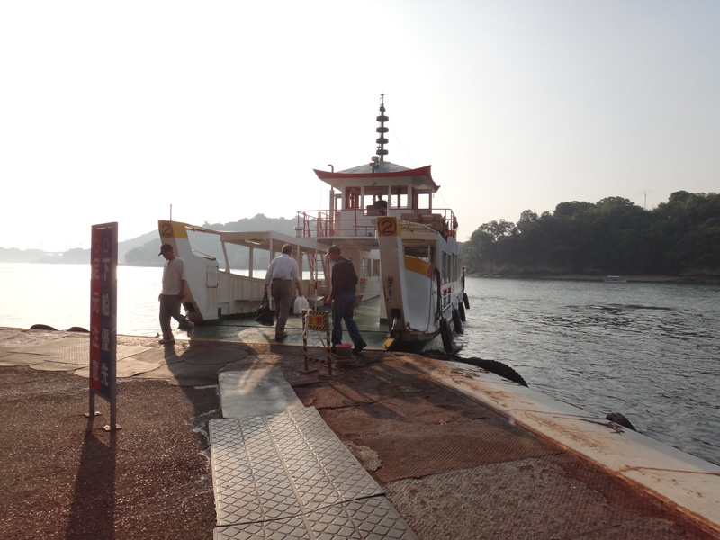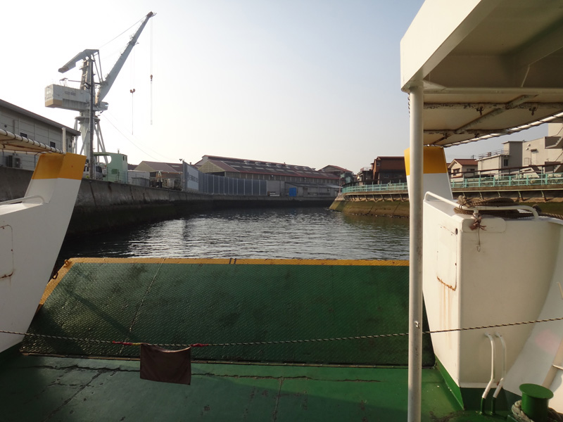 レンタルサイクルの少し脇から、船が出ている。 目の前にある向島まではフェリーで渡る。 道路で渡る道もあるらしいけど、道が狭く危険らしい。