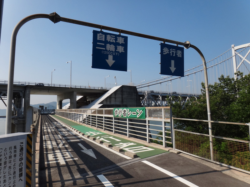 しばらく走り、橋の入口に到着。 この橋は上が自動車専用道路、下が歩行者、自転車、原付専用になっている。