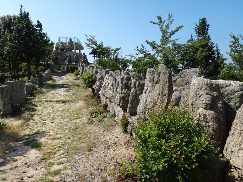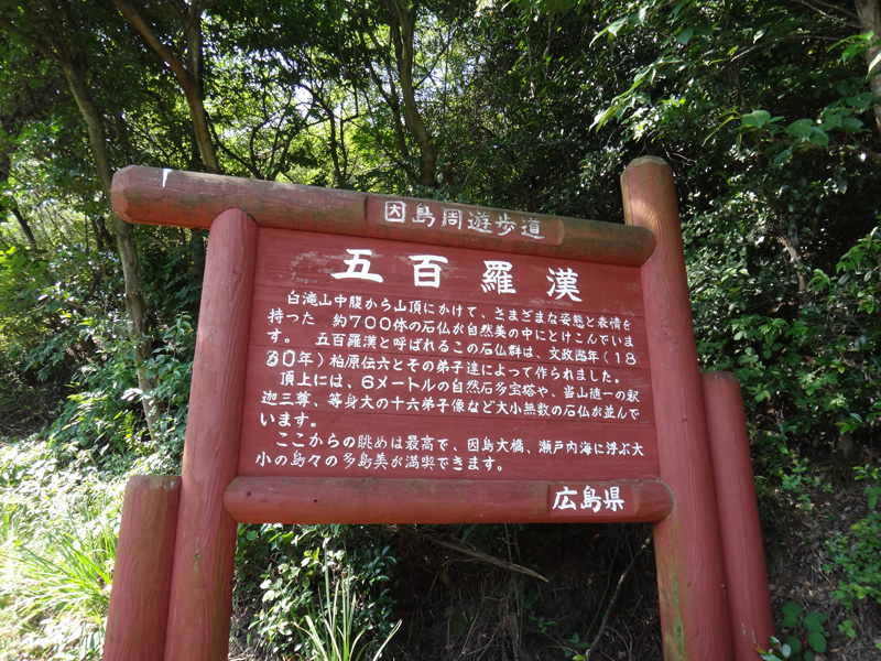 だけど、ここからはもう一つ寄り道する。 「白滝山」というところに寄って「五百羅漢」を見て行く。 サイクリングロードを走っていると、白滝山への分岐があった。 分岐を曲がったら、すぐに急な登り坂。 ギアを1速にして、立ちこぎするが、全然登れず。 自転車を押して登ることに。
