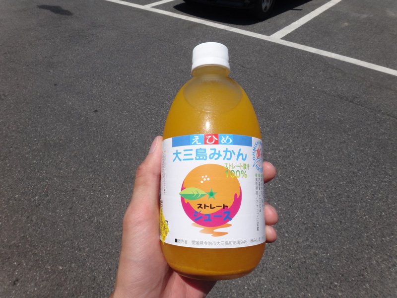 「道の駅 しまなみの駅御島」に駐輪して、まずは水分補給。 愛媛と言ったらやっぱりみかんだな。 みかんジュースを購入して、一気に飲み干す。