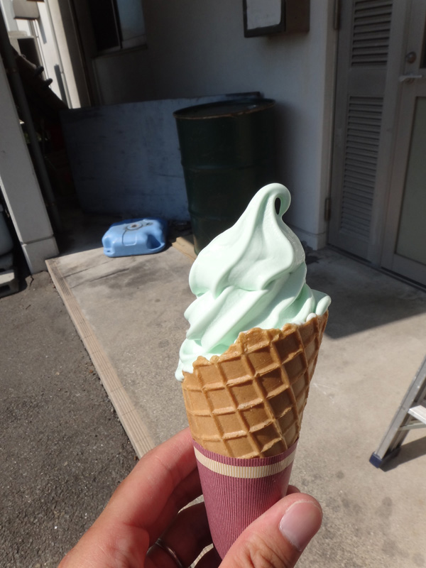 気温が高いので、一瞬で溶けてくる。 早く食べなくては……