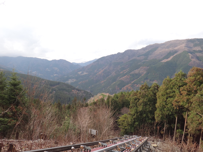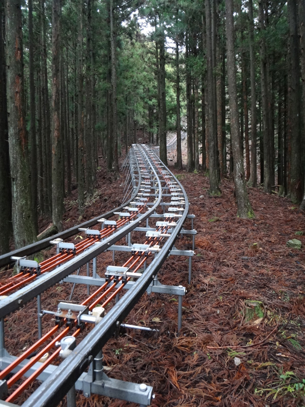 ということでレールに沿って降りてみた。 一直線に降りていくので、登山道に比べると傾斜は急だけど、特に危険な箇所もなかった。