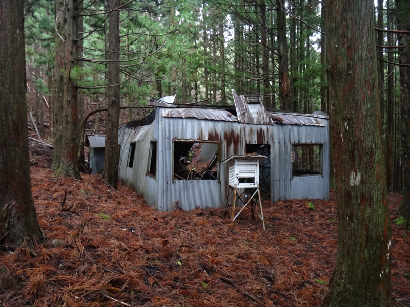 登ってきた道を降りていく。 すぐに旧造林小屋までやってきた。