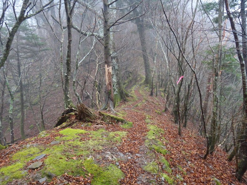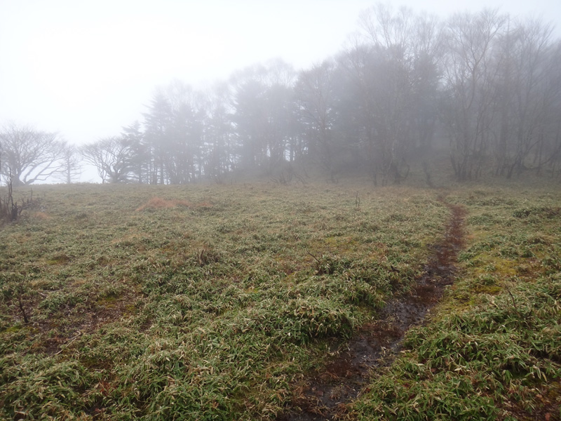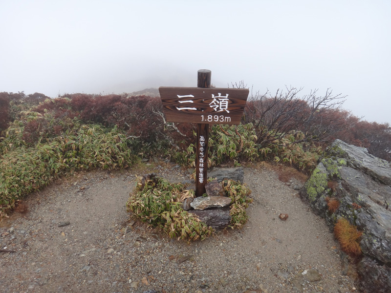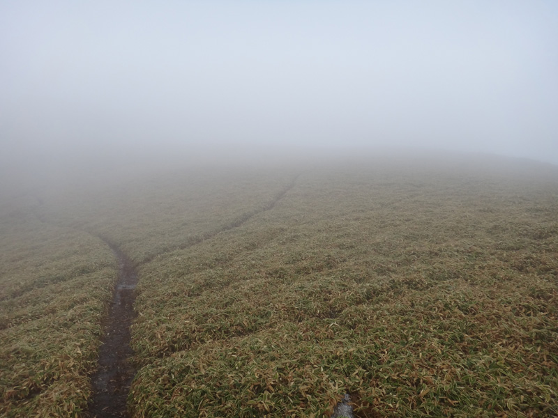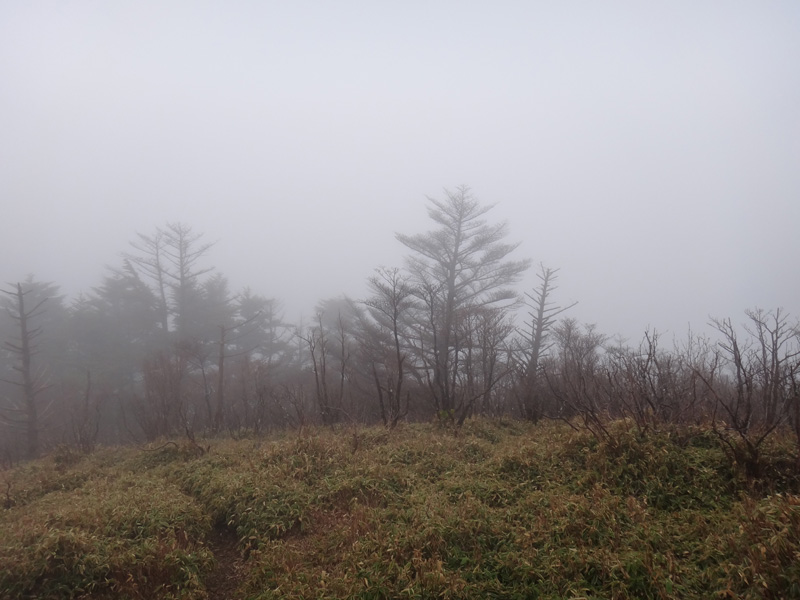 すぐに1791m地点まで到着。 ここから三嶺の山頂が綺麗に見えるはずなんだけど、真っ白で何も見えず。
