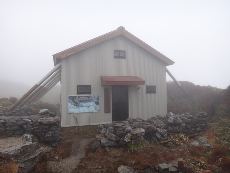 三嶺ヒュッテに引き返してき、中で休憩することに。