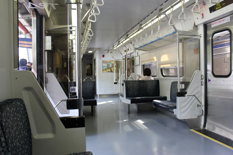 最初、電車は混んでいたが、一駅目の「松山駅」でかなりの人が降りて座る事ができた。