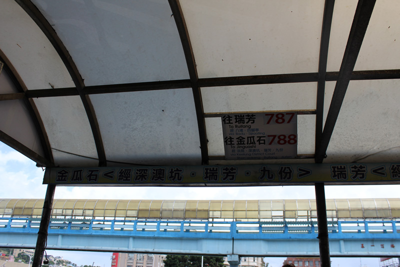 バスターミナルに到着しバスを待つ。 乗るバスは「金爪石」行きのバス。 そのバスに乗って九份を目指す。 20分ほど待っていたらバスがやってきた。 待っていた人みんな、そのバスに乗っていき、バスは満席。 座れてよかった。