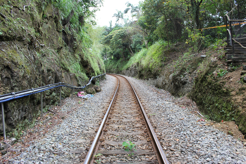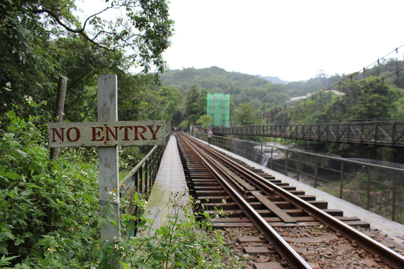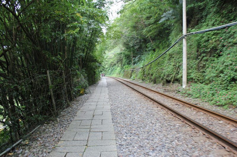 この滝に行く道が面白く、平渓線の線路沿いを歩いていく。
