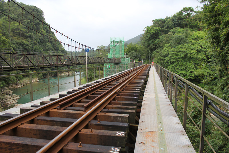 「Stand by me」みたいに、橋の上の線路脇を歩いたりで、10分くらい歩いて十分瀑布の入口に到着。