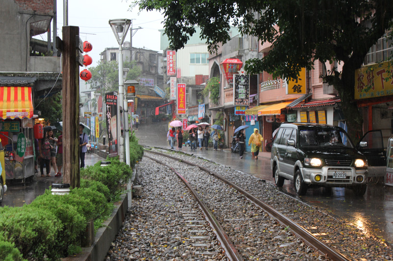 通常だと、バスで「瑞芳駅」まで戻り、そこから「平渓線」という路線に乗り、「十分駅」まで移動するというのが通常のルート。 平渓線はけっこう田舎の路線なので、1時間に1本くらいしか電車が無いらしい。 移動も結構大変なので、九份から十分まではタクシーで移動すると決めていた。