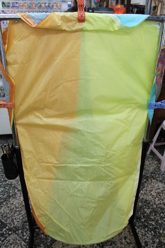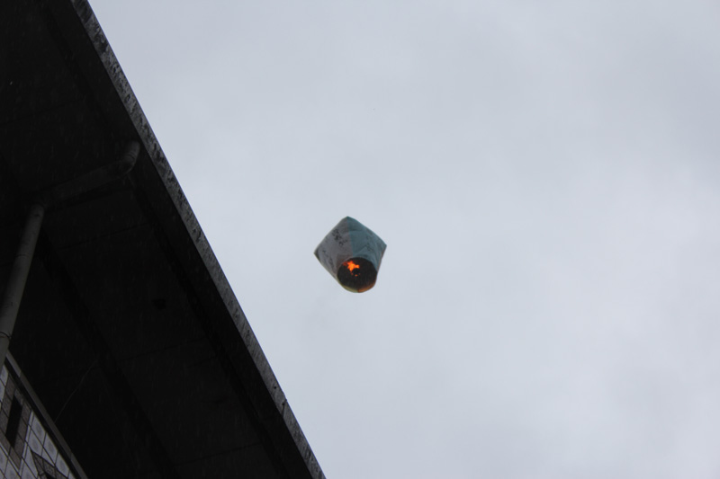願い事を書いた後は下部に設置された点火剤に火をつける。 そして蒸気で天燈が膨らんでいく。