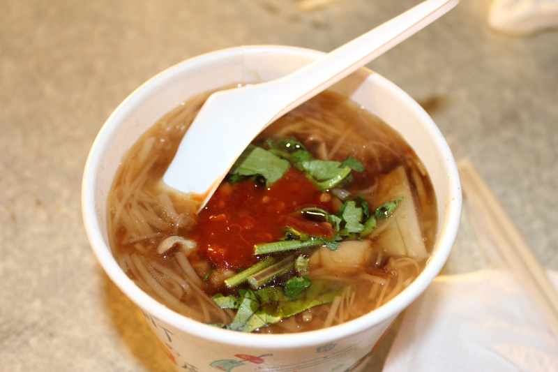 相変わらず中国語メニューがさっぱりわからないので、お互いに片言の英語で、ヌードルとスープを注文。 ヌードルはあまり美味しくなかったが、スープは普通だった。 ヌードルって言っても、ラーメンみたいにスープが入ってるわけじゃないのね。