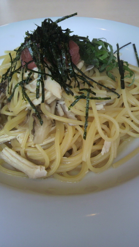 お昼はグラッチェへ。 鶏肉と梅しそのパスタとドリンクバーで一時間滞在。