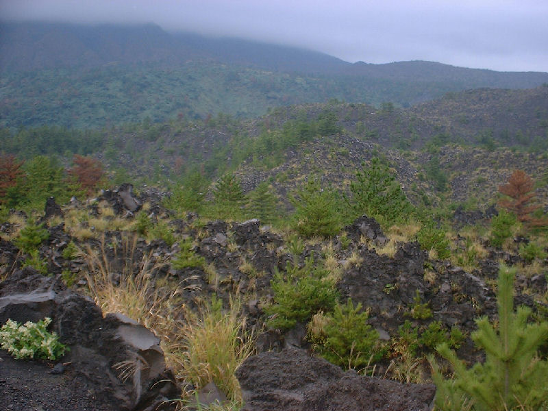 すぐに桜島周回道路に入る。 なんか道路脇にゴツゴツした岩があり、雰囲気が富士山に似ている。