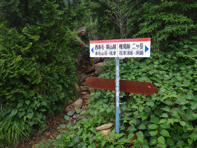 瀬場谷分岐からは西側のルートを登っていく。 赤石山荘付近で休む予定なので、こちらのルートを選択。