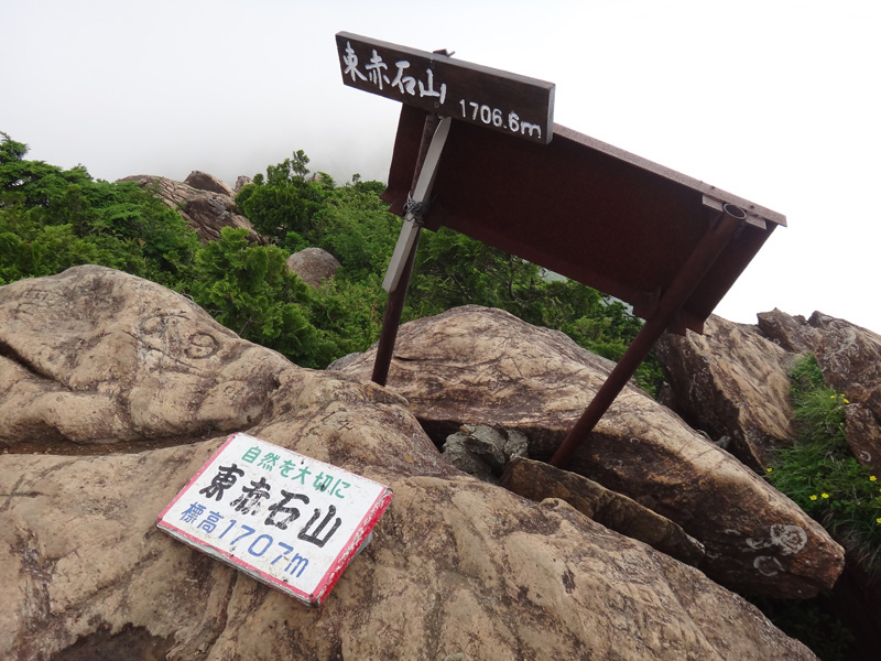 赤石越まで到着したので、山頂は目前。 最後の登りを歩き、ようやく山頂に到着。 3時間~3時間半で登る予定だったが、5時間10分もかかってしまった。 まだ時間は大丈夫だけど、かなり計画が狂ったな。