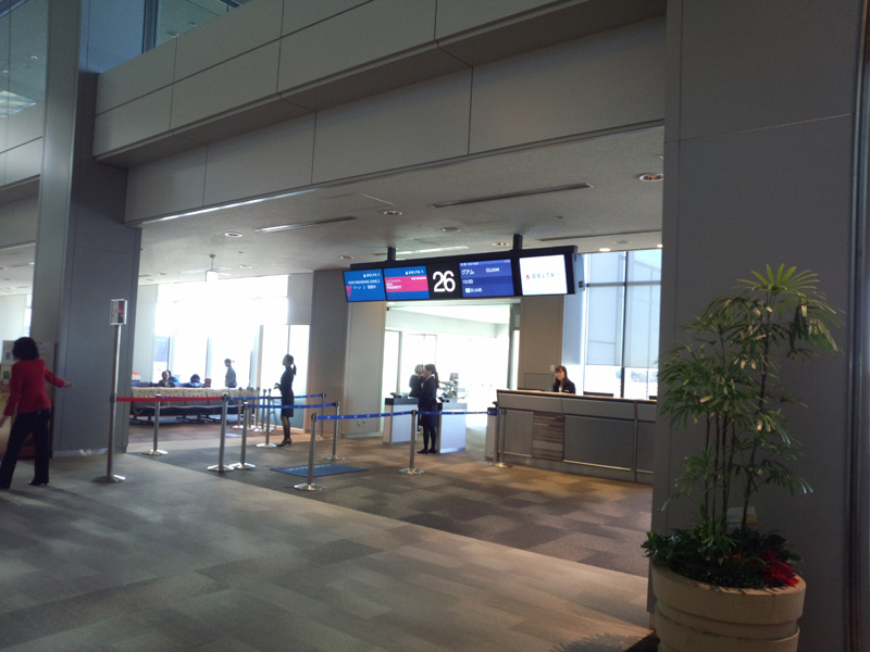 バスに乗って、10分程度で成田空港に到着。 今回利用する航空会社はデルタ航空という所。 チェックインをセルフでやらないといけないみたい。