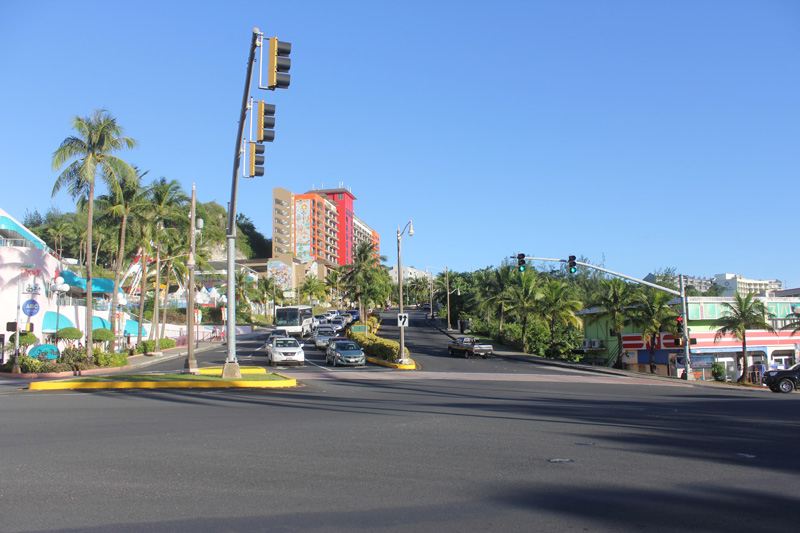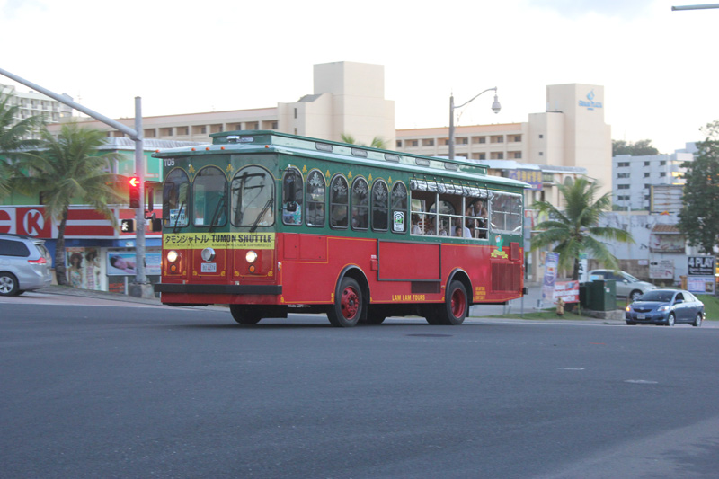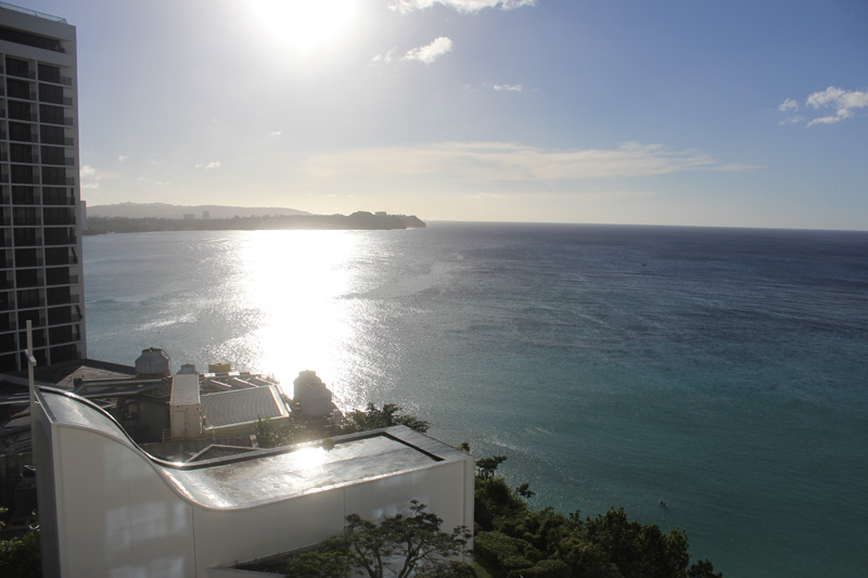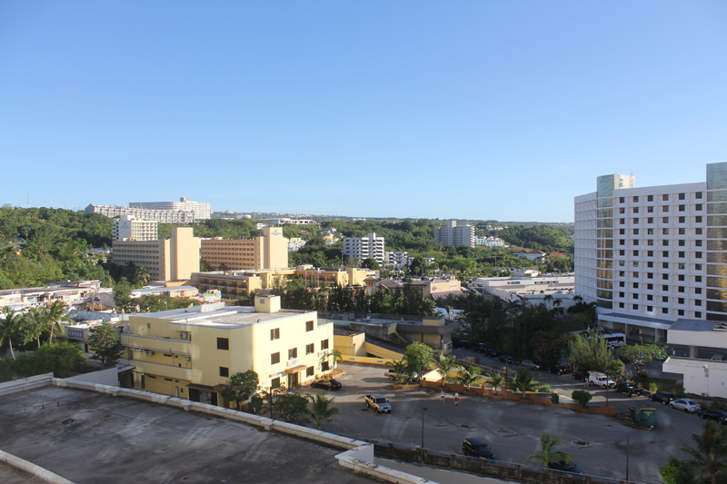 バスに乗って移動しながらグアムの説明を受ける。 15分程でホテルに到着。 だが、もう16時前になってしまっている。