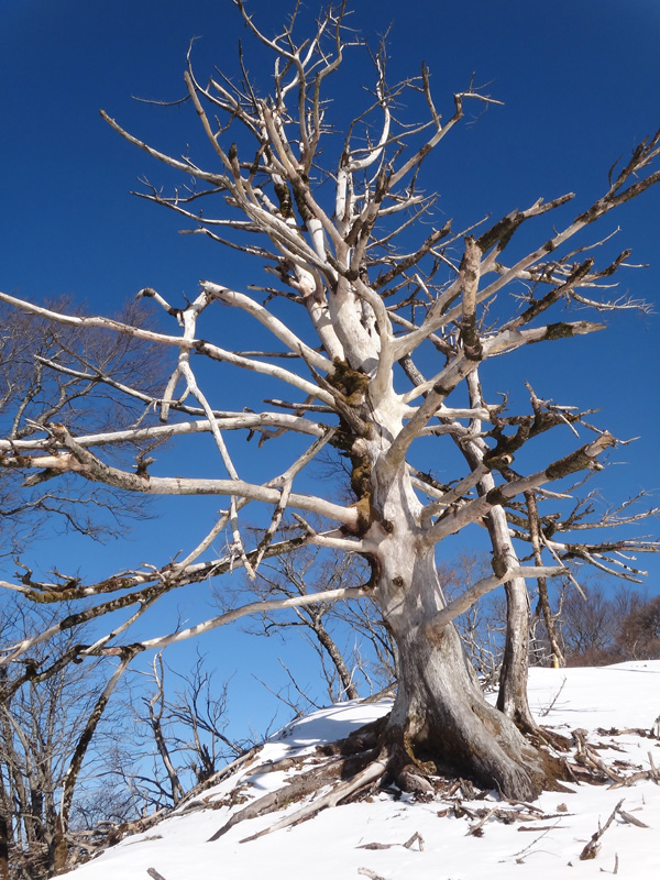 今回の登山、雪が思っていたより無く、ピッケルの出番が無く残念だった。 冬の石立山に登ったのは初めてだったので、この積雪量が普通なのか少ないのかはわからないけど、以前に三嶺から見た石立山は、もっと雪に埋もれていたような気がした。 冬季の石立山は目標の一つでもあったけど、ちょっと拍子抜けで残念だった。