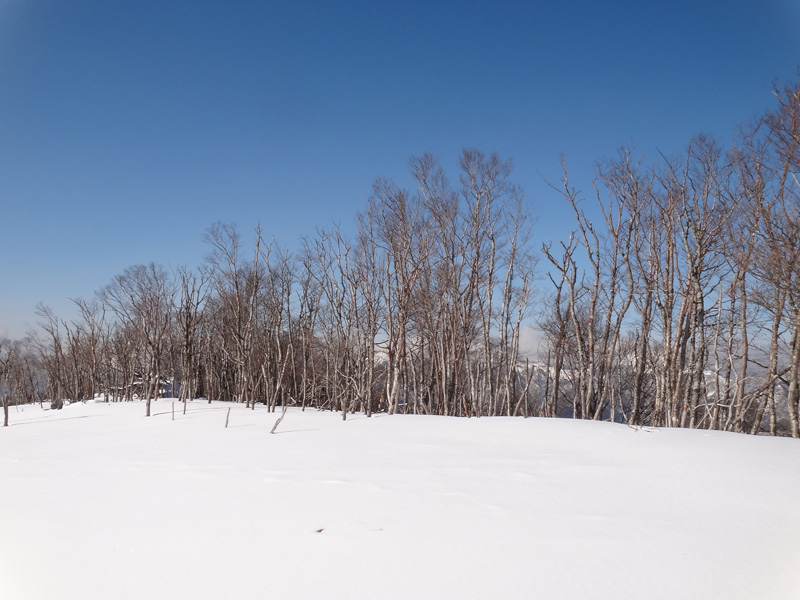 山頂には誰もいなく、平べったい山頂なので、雪景色が綺麗だった。 山頂から、北方面の山は全然見えないな……