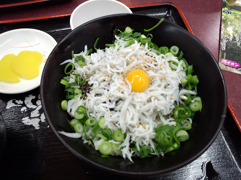 特に寄る場所もないので、そのまま高速で帰ってくる。 途中、津田の松原SAで、お昼ご飯を食べる。 釜揚げしらす丼を食べる。