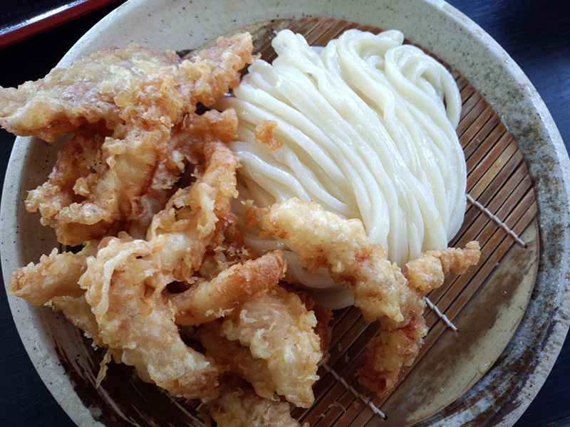 子守をしながらゲームをして、10時過ぎからうどんを食べに、「噂の麺蔵」に行ってきた。 GWだけど、この時間は全然混んでいなかった。 いか天ざるを注文。 小だけど、けっこう量が多かった。