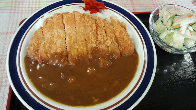 試合が終わり、翼山温泉の食堂でお昼ご飯のかつカレーを食べる。 帰りも自転車で帰るので、エネルギーをつけなくては。