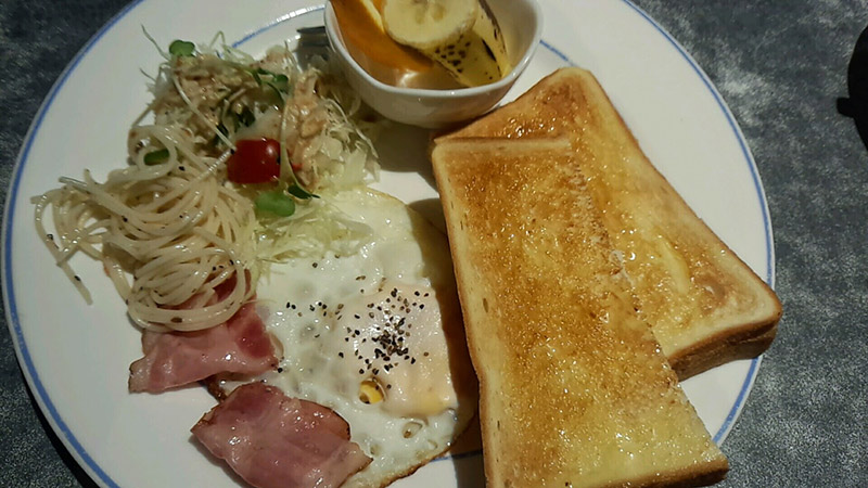 今日は金曜日なのでモーニングへ。 ここの喫茶店は70越えた老夫婦が経営しているのだけど、今日は娘か息子の嫁かが手伝いに来ていた。 年齢も年齢だし、そろそろ二代目へ譲るのだろうか? 二代目が注文を取りに来たのだけど、取に来る前オーナーに「Dでレモンティーマグだからね」と耳打ちされていた。 いつも頼むメニューなので、次から「いつもの」で出て来るかな?