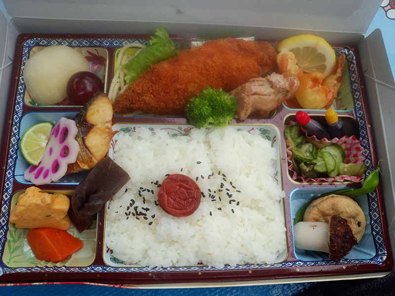 お昼は、お弁当を注文していたのでそれを食べる。 けっこう盛りだくさんなお弁当だった。