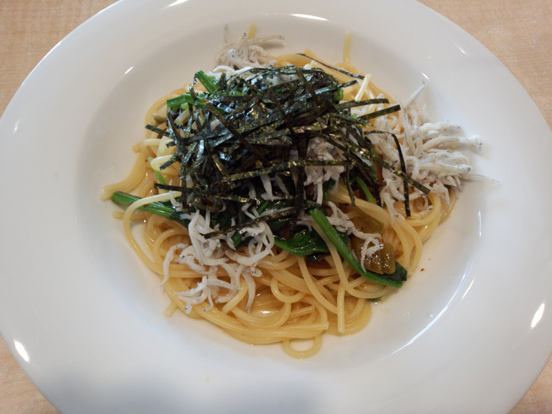 お昼はグラッチェへ。 今日はいつもとは違う「しらすと高菜の和風スパゲッティ」を食べる。 それとドリンクバーでアッサムティーを飲んでゆっくりと過ごす。 偶然会社の人がやってきて、お昼は楽しくおしゃべりができた。