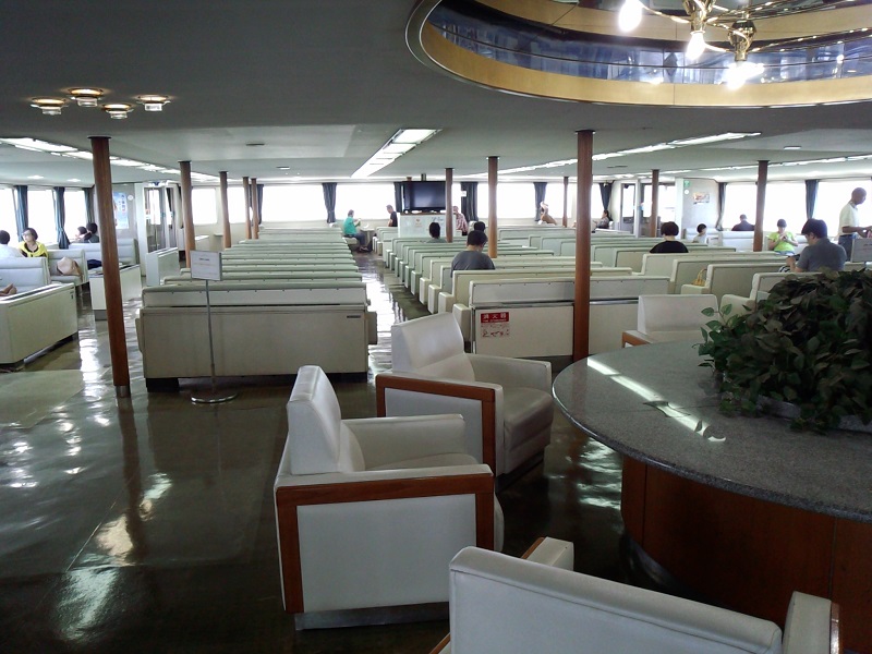 船の中でおにぎり弁当を購入して、朝ご飯を食べて、ジュースを飲んだりお菓子を食べたり、甲板から海を眺めたり、約1時間の船旅を満喫した。
