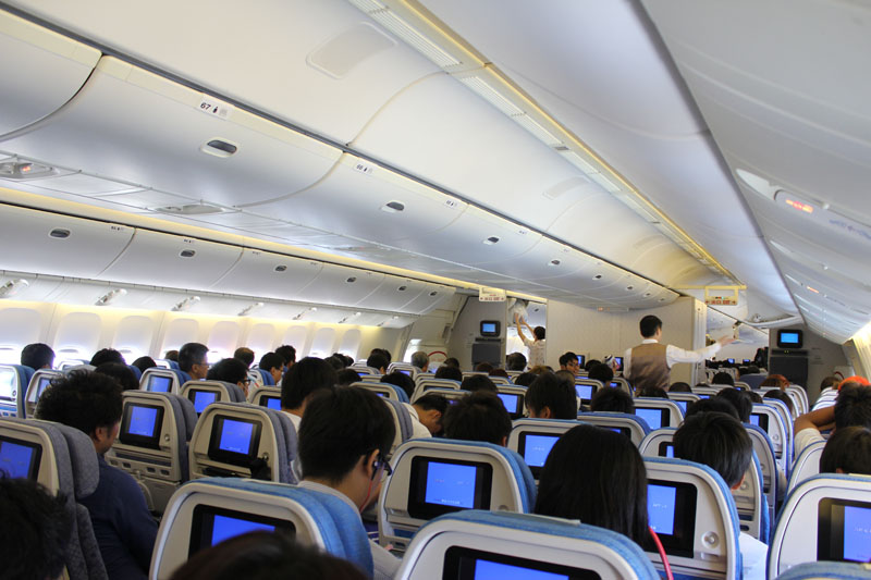 飛行機の乗り場が4番ゲートだったので、そこまで空港内の電車を使って移動。 免税店で買い物をしたり、トイレに行ったりしていたら、あっという間に時間が経って、飛行機に乗り込んだのが9時40分とかだった。 まだ20分余裕があったけど、もうかなり最後の方で「早く乗れ」みたいな雰囲気だった。