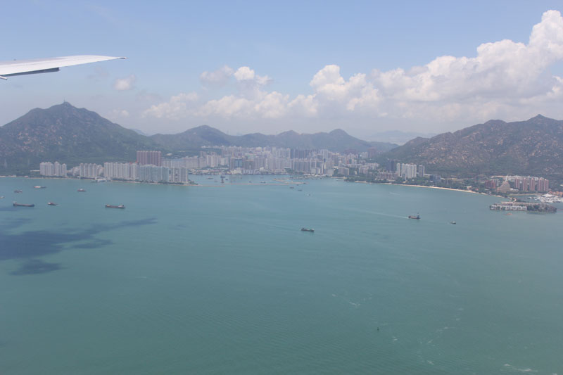食べ終わった後は寝て体力を回復させる。 香港が近くなって、景色が見えるようになってきた。 背の高いビルが密集してるのを見ると、中国っぽいなぁと思う。 そして香港国際空港に到着。