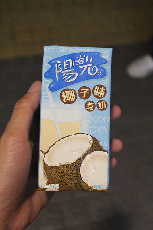 合流場所の目の前にセブンイレブンがあったので、そこで飲み物を購入、どうやら香港の豆乳らしい。 薄い甘い味がした。
