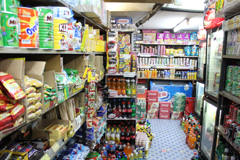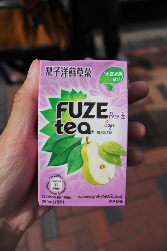 Nathan Road自体は綺麗なお店しかなくつまらないので、一本道を入ってみることに。 怪しい雑居ビルの1Fにいくつもお店が入っている場所があったので、そこの怪しい商店に入る。 見学だけじゃ悪いので、ジュースを買った。