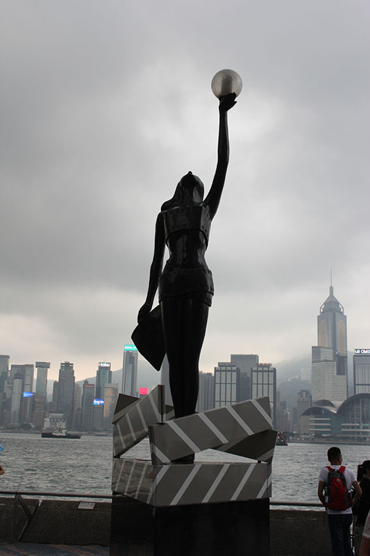 今回の九龍、特に目的地はないのだけど、同行者がブルース・リーの銅像が見たいと言っていたので、そちらに向かって歩いて行く。 距離的には2,3kmはあるのだけど、途中で「柯士甸」からMTRに乗り、1駅隣の「尖沙咀」まで。 尖沙咀で、海の方に歩いて行くと、ブルース・リーの銅像などがある「星光大道」がある。 海沿にいくつも銅像があるので、それらを見ながら歩いて行く。 ブルース・リーの銅像を見た直後、すごい雨が降ってきた。 急いで屋根のある所に避難。 だが、雨は止む気配が無く、尖沙咀駅まで5分くらいダッシュで戻る。 地下に入って、雨をしのげるようになったのだけど、これからどうしようか。