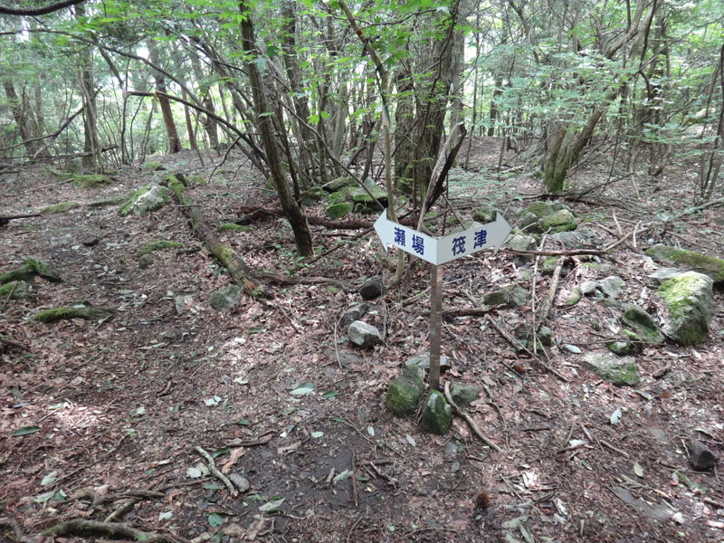 瀬場谷分岐で休憩、お茶をがぶ飲みして、おにぎりを2つ食べてしまった。 栄養が足りないのか、水分が足りないのかわからないけれど、フラフラは直らず。 山頂までまだ2時間はかかるので、このまま登れないことはないだろうけど、きついなぁ。