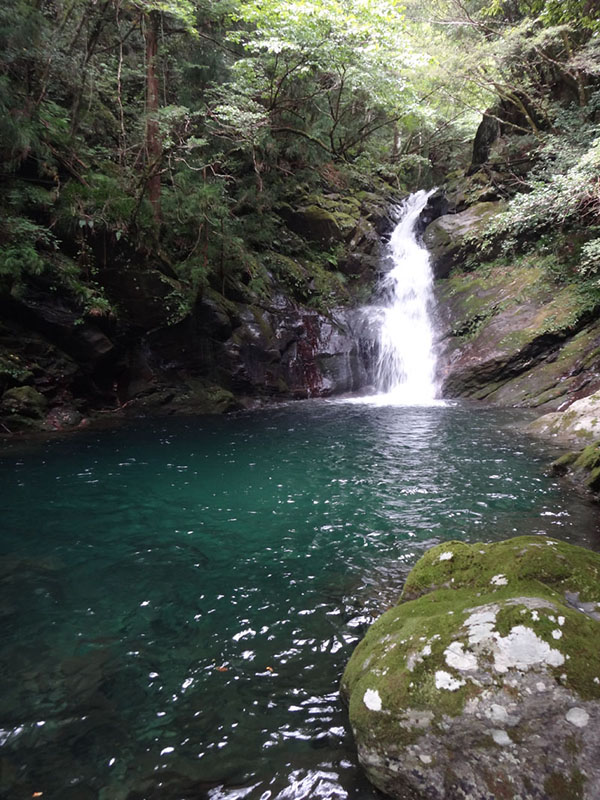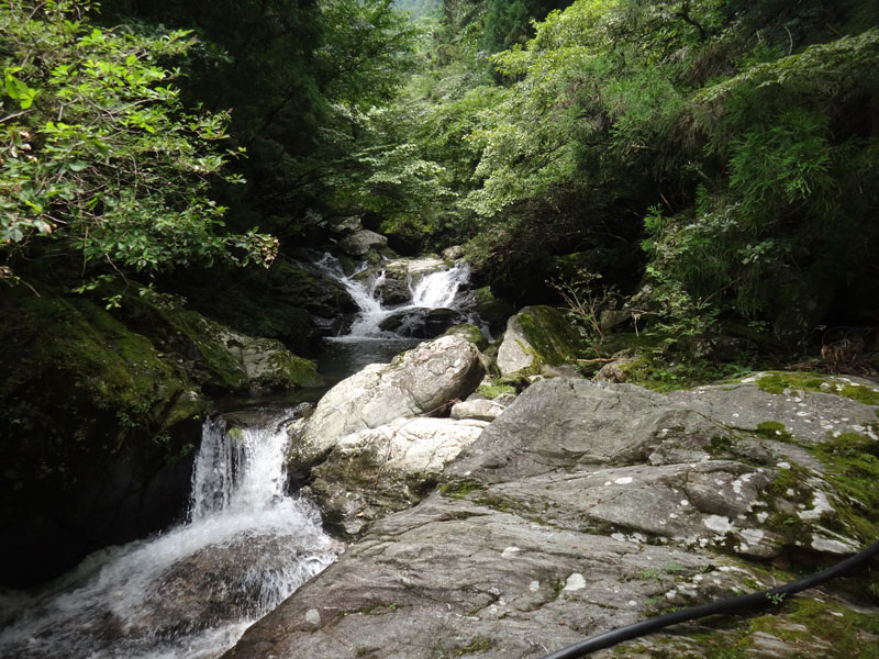 すぐに川沿いの道にたどり着く。 川沿いを歩いて滝を目指すのだけど、山の中の川なので、巨大な岩がゴロゴロしていたり、岩壁になっていて通れなかったり、苦戦しながら歩いて行く。 川沿い歩けず、何度も山の中に入って、すぐ先で川に合流して、をくり返していた。