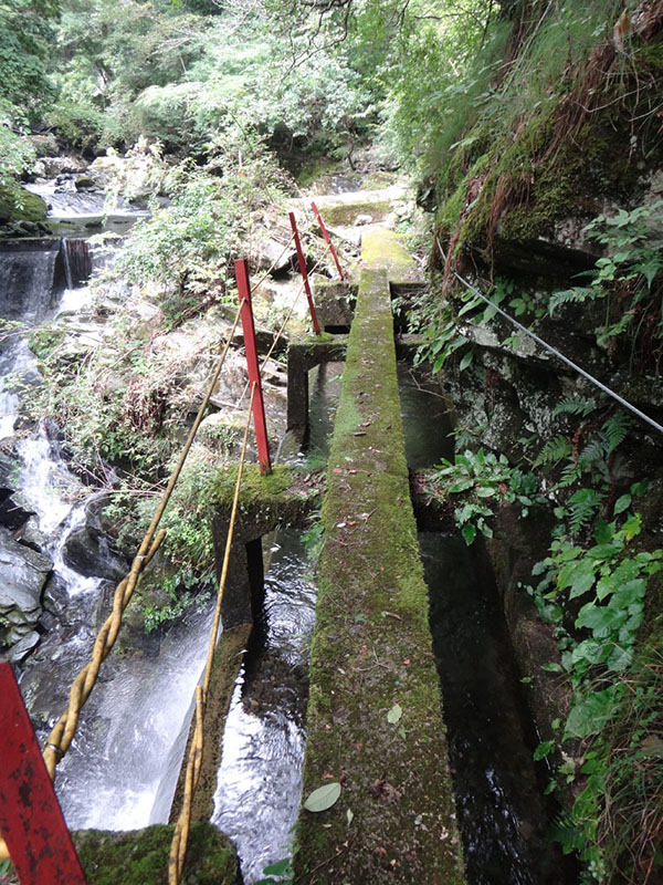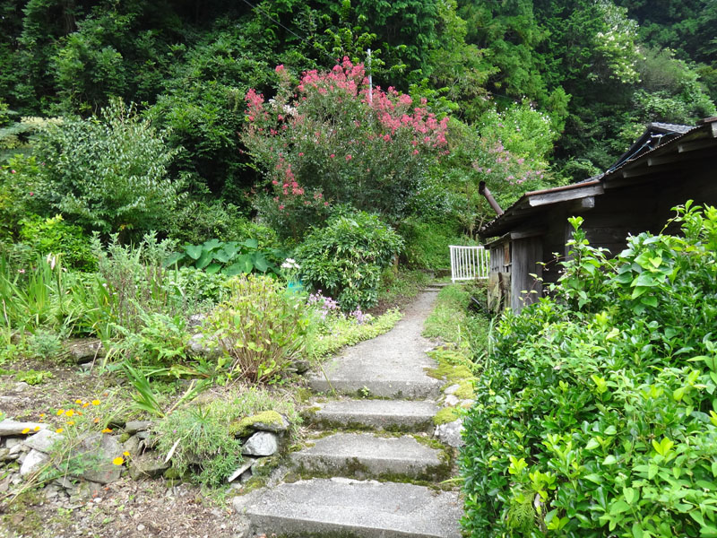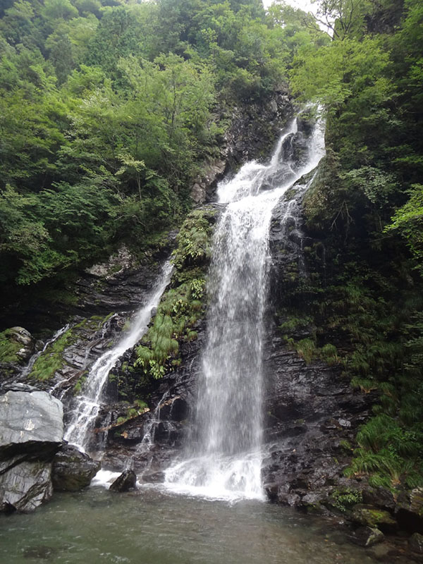 滝は上から見るよりは小さかった。 下からじゃ全景が見えないな。 滝を満喫して戻る。 帰り用水路みたいな道をずっと進んでいく。 途中で発電所の施設があり、あとはジグザグに山を降りて行ったら、発電所の横の民家のところに出た。 が、登るために入った小道とは別の小道だった。 なるほど、ここが正規ルートだったのか。 かなり遠回りした感じだけど、今日は山にも登ってないし、ちょうどよかったかも。